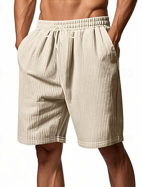 Homens Shorts de linho Shorts de verão Shorts de praia Com Cordão Bolsos Tecido Conforto Respirável Acima do Joelho Casual Diário Ao ar livre Férias Casual Preto Branco Sem Elasticidade