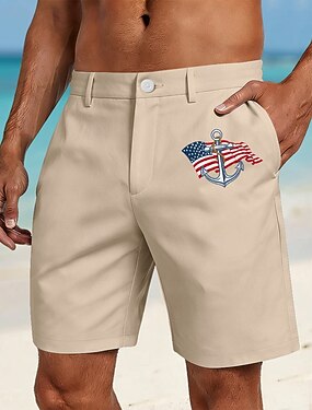 Calças de 2 em 1 patrióticas masculinas da bandeira dos EUA do Dia da Independência shorts forrados de bainha bermudas cintura média férias bolsos laterais com forro de compressão cintura elástica