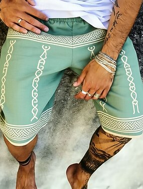 Homens Cultura indiana Calção Shorts de verão Shorts de praia Cintura Média Havaiana Étnico Casual Feriado Dia de São Patrício Com Cordão Cintura elástica Imprimir Designer Roupa