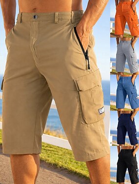 Homens Shorts táticos Bermuda Cargo Calção Shorts de Trilha Cintura elástica Bolso Com Zíper Bolso multi Tecido Respirável Secagem Rápida Comprimento do joelho Ao ar livre Casual Diário Esportes