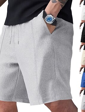 Homens Calções Waffle Calção Shorts casuais Bolsos Cintura elástica Cor Única Conforto Respirável Acima do Joelho Casual Ao ar livre Praia Férias Moda Preto Branco Micro-Elástica