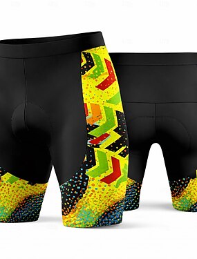 Homens Geométrica Shorts de ciclismo Calções de bicicleta Bermudas Acolchoadas Para Ciclismo Moto Calção Calças Fino Esportes Tapete 3D Secagem Rápida Redutor de Suor Respirável Preto / amarelo Roupa