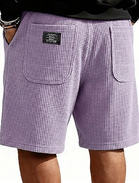 Homens Calções Waffle Calção Shorts casuais Bolsos Cintura elástica Tecido Conforto Respirável Acima do Joelho Casual Ao ar livre Praia Férias Moda Azul Preto Sem Elasticidade