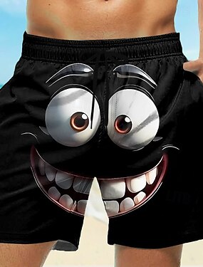 Homens Desenhos 3D Rosto sorridente Olhos grandes Calção Justo de Natação Shorts de Natação Bermuda de Surf Cintura Média Engraçado Ao ar livre Férias Dia a Dia Bolsos laterais Forro de malha Cintura
