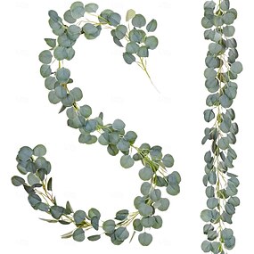 Guirlanda artificial de eucalipto (2 unidades), 2 metros de comprimento, feita à mão com folhas de eucalipto de seda sintética, ideal para decoração de casamentos, arcos e paredes.