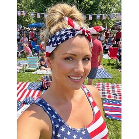 Conjunto de bandana feminina boêmia de algodão com a bandeira americana, 2 peças, versátil lenço de cabeça e gola para o pescoço, ideal para o 250º aniversário dos EUA, Dia da Independência, festivais