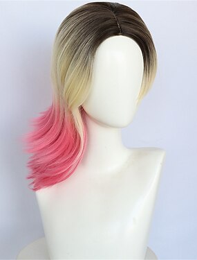Perucas cosplay Loiro Rosa Côr Misturada Liso Cabelo Sintético Curto perucas Mulheres perucas Para festa