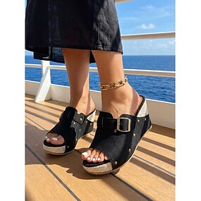 Sandálias femininas marrons com fivela ajustável e salto anabela – sandálias casuais confortáveis de bico aberto com sola acolchoada antiderrapante, ideais para caminhadas no verão, viagens, praia,