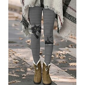 Mulheres Calças Leggings Leggings aconchegantes Roupa de rua Casual Comprimento total Cintura Alta Gato Listrado Cintura elástica Imprimir Respirabilidade Confortável Com Stretch Férias Rua Roupa