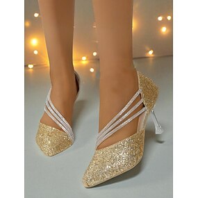 Sapatos de salto alto com glitter dourado para mulheres - elegantes sapatos de salto alto com tiras para eventos formais e festas noturnas