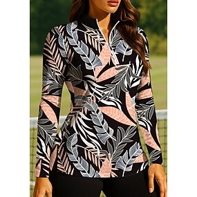 Mulheres Floral Camisa polo de caminhada Camisa de tênis Moletom de tênis Manga Longa Imprimir Quarter Zip Pullover Proteção UV Elástico Respirável Tênis Golfe Pickleball Colarinho Chinês Gola com