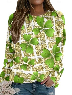 rua. Blusa/camisa irlandesa trevo do dia de São Patrício manga desenho animado anime gráfico camisa kawaii para homens adultos estampa 3D 100% poliéster casual diário