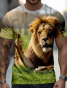 Homens Leão Engraçado Camiseta Manga Curta Camiseta Impressão 3D Gola Redonda Camisa Exagerado Designer Festa Feriado Marron Verão Primavera Roupa S M L XL XXL XXXL