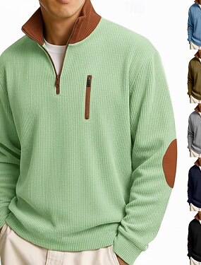 Homens Camisa Waffle Camiseta T-shirt Camisa de manga longa Manga Longa Decote V Primavera & Outono Tecido Moda Designer Básico Férias Rua Para Noite Branco Laranja cáqui Top Tee para Homens