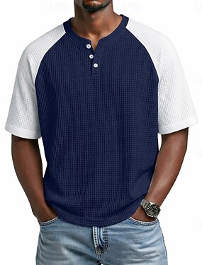Homens Camiseta Waffle T-shirt Manga Curta Henley Verão Primavera Todas as Estações Côr Sólida Bloco de cor Moda Designer Casual Mangas Raglã Casual Diário Ao ar livre Azul Claro Preto Verde Claro