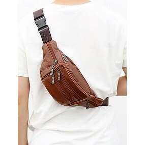 bolsa de cintura masculina de couro genuíno - pochete transversal com vários bolsos, alça ajustável, zíperes duráveis e estilo casual para atividades ao ar livre, ideal para viagens, caminhadas e uso diário