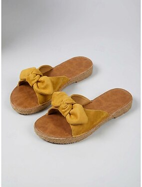 Sandálias femininas amarelas com laço – sapatos casuais de bico aberto, ideais para o verão, para usar no jardim ou no dia a dia.