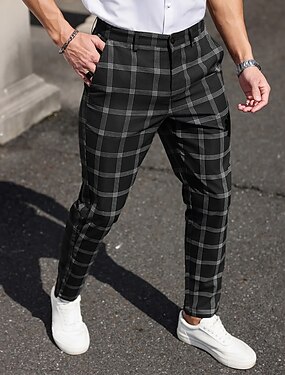 Homens Geométrica Grade / xadrez Social Calças Calças de Terno Cintura Média Business casual Formal Dia a Dia Calças Slim Fit com Bolsos Primavera Outono Impressão 3D Preto Azul Escuro Cinzento Escuro