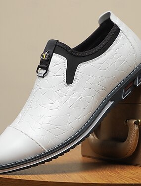 Sapatos masculinos brancos com relevo, bico quadrado elegante e sola decorativa, mocassins modernos e formais para homens de negócios e estilosos, ideais para casamentos, ambiente de trabalho, festas e banquetes.