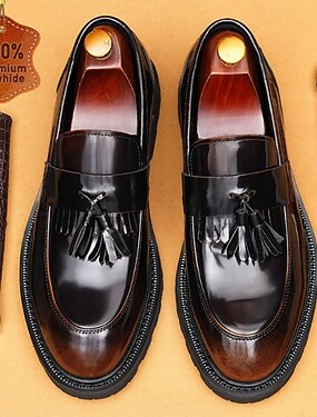 mocassins masculinos pretos com borlas, sapatos sociais clássicos sem cadarço para uso no escritório, festas e ocasiões semiformais