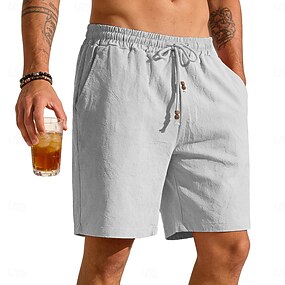 Homens Calção Shorts de linho Shorts de verão Shorts de praia Shorts largos Com Cordão Cintura elástica Perna reta Tecido Cor Única Conforto Respirável Comprimento do joelho Diário Ao ar livre