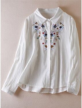 Mulheres camisa Boho Tops elegantes Bordado Côr Sólida Floral Diário Casual Manga Longa Bispo Colarinho de Camisa Tops regulares Diário Trabalho Para Noite Branco Primavera / Outono / Inverno / Verão