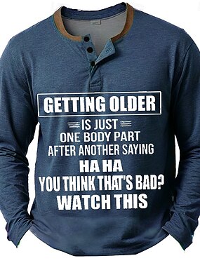 Camiseta Gráfica Engraçada Masculina sobre Envelhecer de Manga Longa Henley