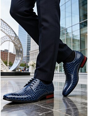 Sapatos sociais masculinos azuis com cadarço – Oxfords de couro legítimo para negócios com detalhes texturizados, calçados elegantes para escritório, festas e ocasiões especiais