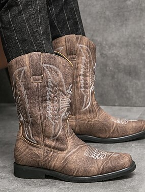 Botas de cowboy masculinas estilo country, bico quadrado, cano médio, estilo country casual para uso diário