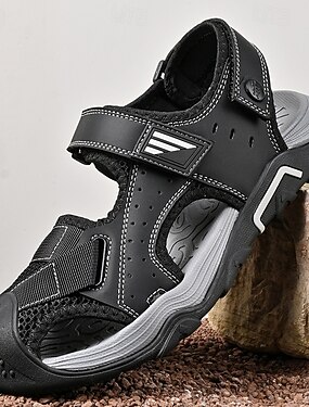 sandálias masculinas - sandálias de caminhada cinza com tiras de velcro, leves e confortáveis para camping, atividades ao ar livre e viagens