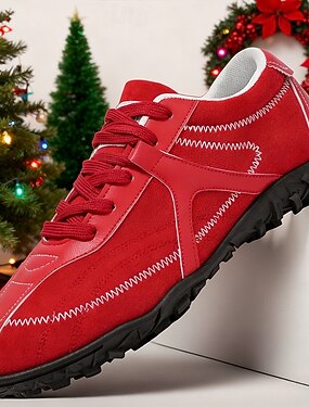 Tênis masculino casual vermelho com detalhes de costura e sola macia, calçado esportivo respirável para atividades ao ar livre, caminhadas e moda diária