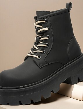 Homens Botas Botas de trabalho Caminhada Vintage Diário Couro Ecológico Aumentar a Altura Confortável Botas Cano Médio Com Cadarço Preto Outono Inverno