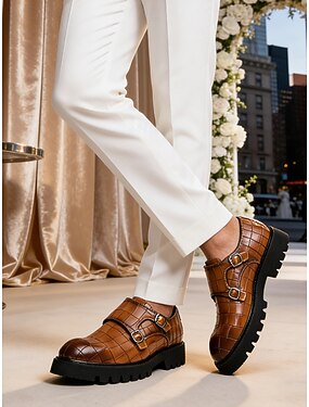Sapatos sociais masculinos de couro sintético marrom com biqueira de metal, elegantes para festas e negócios