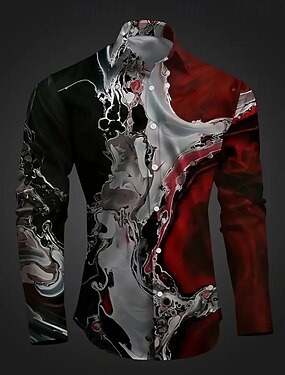 Homens Mármore Arte Líquida Abstrata Camisa Social camisa de botão Camisa social casual Manga Longa Escuro Férias Diário Streetwear Verão Primavera Aberto para a Lateral Impressão 3D camisas de