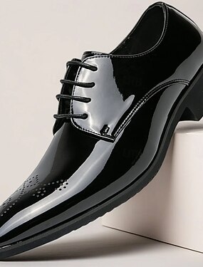 Sapatos de casamento masculinos em verniz preto de couro sintético – sapatos de luxo para noivos e eventos formais.