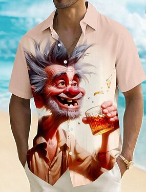 Homens Personagens de Desenhos Cerveja Velhote Camisa Social camisa de verão camisa de botão Manga Curta Engraçado Vintage retrô Ao ar livre férias na praia Verão Primavera Aberto para a Lateral