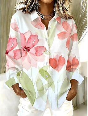 Mulheres Camisa Social Botões Imprimir Floral Gráfico Vintage à moda Moderno Manga Longa Colarinho de Camisa Tops regulares Diário Branco Verão Primavera