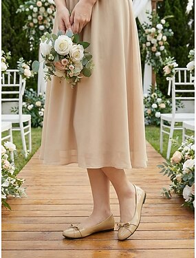 Sapatilhas de ballet nude femininas com laço - sapatos confortáveis para damas de honra em casamentos ao ar livre.