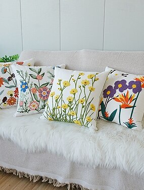 Capas de almofada bordadas em estilo campestre para sala de estar, sofá, almofada decorativa com estampa floral fresca para encosto de cabeça, perto da janela