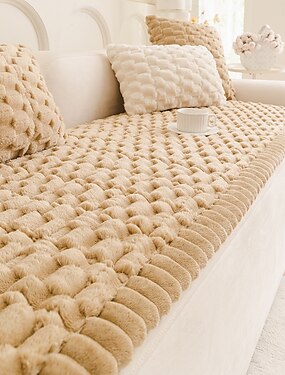 Capa de sofá luxuosa em jacquard felpudo com estampa floral e saia, macia e decorativa, protetora para sofá, antiderrapante, à prova de poeira e resistente a gatos, ideal para todas as estações do
