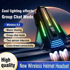 Fone de ouvido Bluetooth sem fio 6.0 para motocicleta, intercomunicador para capacete com modo de bate-papo em grupo, luzes RGB estilosas e compartilhamento de música. &Conexão entre marcas, sistema
