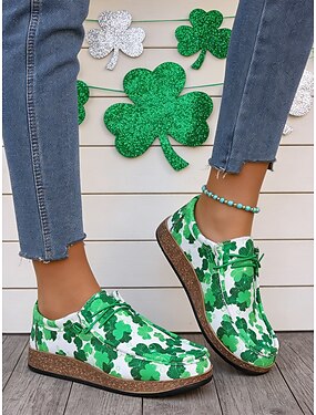 Mulheres Casual Diário Dia de São Patrício Miçangas Sem Salto Ponta Redonda Clássico Casual Conforto Tecido Sem Atacadores Verde