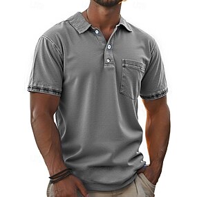 Homens Mármore Pólo Manga Curta Camisas polo Camisas de colarinho Casual Roupa Esportiva Botões Verão Azul Amarelo Roxo