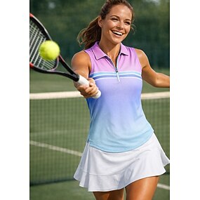 Mulheres Gradiente Riscas Tops Camisa Esportiva Camisa polo de caminhada Camisa de tênis Sem Manga Zíper Floral UPF50+ Resistente a UV Elasticidade Alta Pavio Humido Respirável Voleibal Tênis Golfe