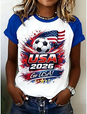 Mulheres Camiseta Imprimir Gráfico Time de futebol à moda Clássico Casual Manga Curta Gola Redonda Tops regulares Diário Azul Preto Rosa Verde Verão Primavera