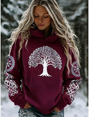 Mulheres Pulôver Moletom Com Capuz Imprimir Gráfico Geométrica Tribal Casual Manga Longa Com Capuz Tops regulares Casual Traje de festa para noite Rua Azul clarete Roxo Verde Primavera Inverno