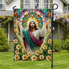 Bandeira de Jardim 12x18 Polegadas Decorações Exteriores Bandeira de Jardim Pátio Bem-vindo Cruz Jesus Bandeira de Jardim Dupla Face Banderas de Férias Exteriores 1pc
