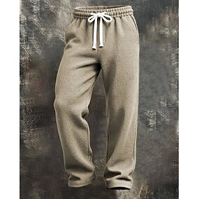 Homens Calças de linho Calças Calça verão Calças de praia Com Cordão Cintura elástica Perna reta Tecido Conforto Respirável Comprimento total Ao ar livre Feriado Praia Férias Moda Preto Branco