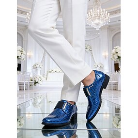 Sapatos masculinos slip-on em verniz azul com estampa de crocodilo - calçado formal elegante para negócios, eventos noturnos e casamentos.