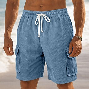 Homens Calção Shorts de linho Shorts de verão Shorts de praia Com Cordão Cintura elástica Bolso multi Tecido Comprimento do joelho Ao ar livre Praia Havaiana Casual Exército verde Preto Sem